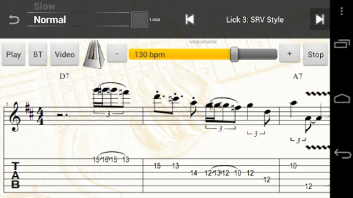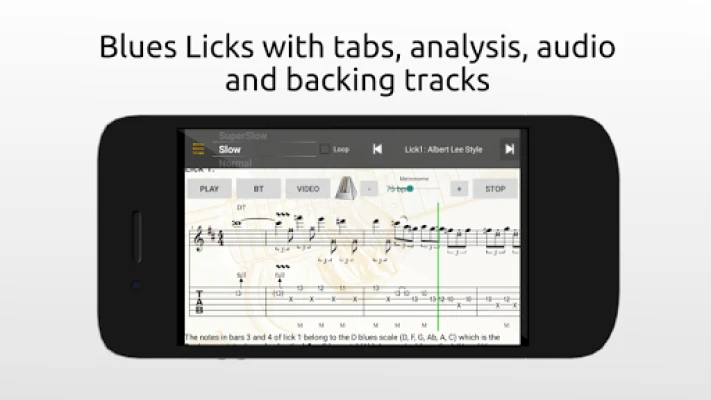 • 20 Licks with tabs, audio and backing tracks at three different speeds