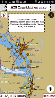 Nautical Charts w/course up orientation. Incl Tide Charts & Currents prediction for nautical navigation. Create Boat routes / Waypoints, or import existing GPX/KML routes on device. Has Marine AIS(NMEA) support.