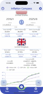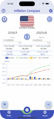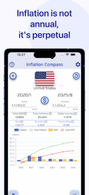 Customizable Analysis: Select any country and define a time period. The app can calculate the final value of an initial amount based on inflation, or calculate the initial value of a final amount you enter, showing its purchasing power in the past.