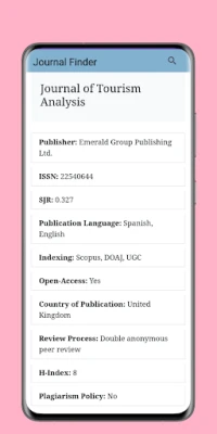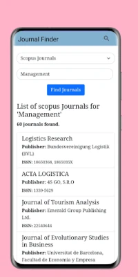 Your ultimate research companion for finding the right journals to publish your work. Whether you're a researcher, academic, or student, JournalFinder simplifies the overwhelming task of finding journals that match your research focus. With a clean interface and robust functionality, the app provides an efficient and user-friendly experience to meet your academic publishing needs.