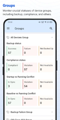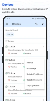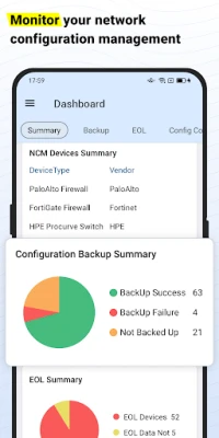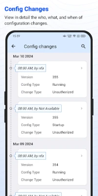The Network Configuration Manager mobile app extends network management capabilities to the palm of your hands. This mobile application enables you to perform crucial operations remotely, empowering you to respond promptly and take necessary actions. This ensures efficient network management even when you're away from the console.